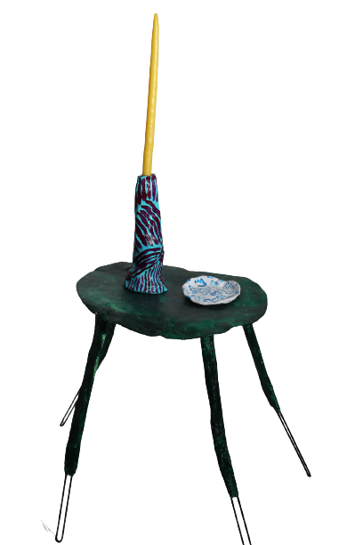 A SMALL TABLE WARPED TO MATCH THE 2D PERSPECTIVE OF A MATISSE PAINTING. THIS WAY I CAN ENJOY A PAINTERLY STILL LIFE BUT IN 3D.