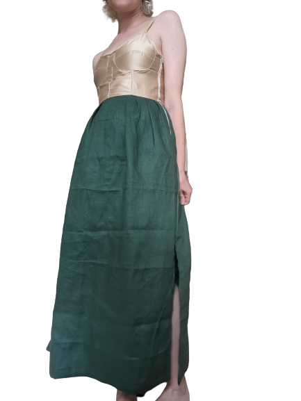 A COMBINATION OF THE CORSET PATTERN AND A LONG LINEN SKIRT TO MAKE A “GOING OUT” DRESS FOR MEXICO CITY.