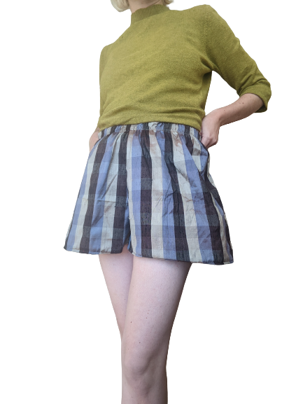 THE WRAP SKIRT PATTERN AGAIN BUT IN A REPURPOSED PICNIC BLANKET FABRIC.